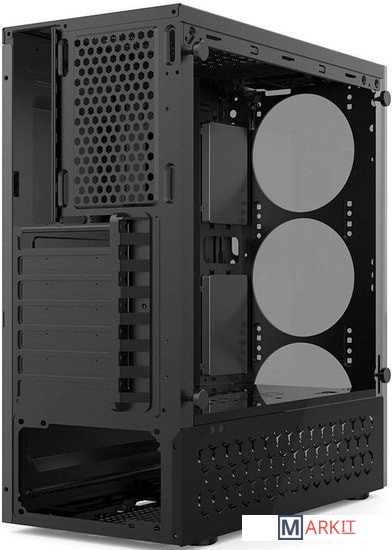 Корпус для игрового компьютера формата Mid-Tower HG-C103RGB с элементами из закаленного стекла и RGB вентиляторами охлаждения — черный.