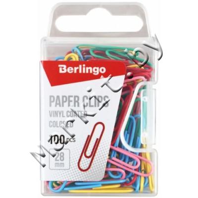 Скрепки Berlingo, 28 мм, 100 шт., округлые, виниловое покрытие Код: 33117