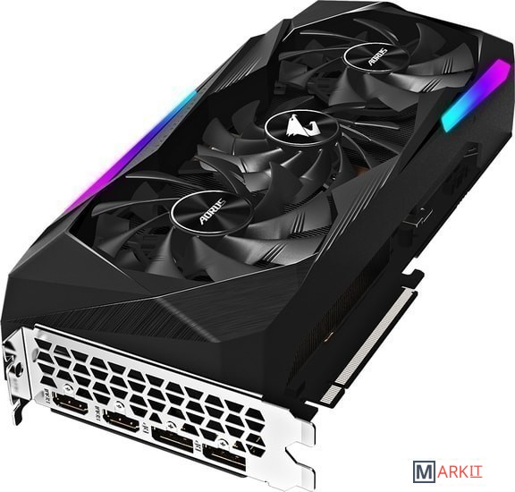 Система охлаждения в исполнении MAX-Covered представлена тремя 100-мм вентиляторами с альтернативным направлением вращения. Сформированный воздушный поток охватывает всю поверхность радиатора.Размещенный на графической плате прогрессивный ЖК-дисплей позволяет выводить текстовую, графическую или анимированную информацию в GIF-формате. Средствами RGB Fusion 2.0 можно выбрать вариант подсветки на основе имеющихся профилей.Настраиваемые параметры цветовой схемы, 16,7 млн. цветовых оттенков, многочисленные световые эффекты и возможность синхронизировать плату с другими устройствами семейства AORUS.